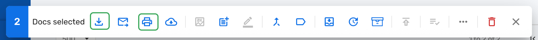 After selecting your documents — whether from Gallery View or Table View — a toolbar will appear.