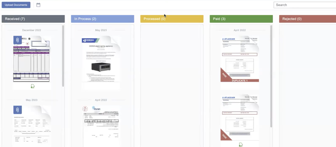 View invoice statuses for any invoices they are tagged in within DOKKA — for example: Received, In Progress, Processed, Paid, or Rejected.