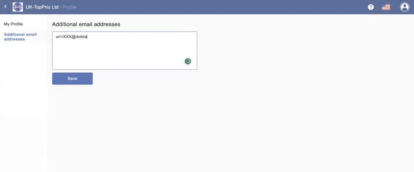 To log in, the supplier should use the email address defined for their user in the DOKKA company settings (Part A).