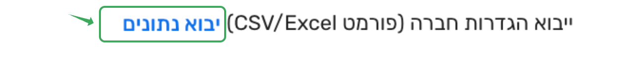 הגדרות החברה -> חיבור למערכות >אקסל -> ייבוא הגדרות חברה (CSV Format)