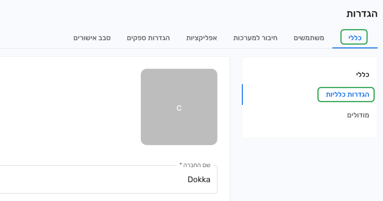 לפני התחלת העבודה על המערכת, חשוב לבצע מספר הגדרות בסיסיות ברמת החברה.