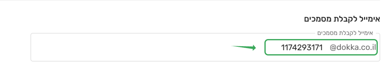 באותו מסך ניתן להגדיר כתובת אימייל ייעודית לשליחת מסמכים לדוקה.