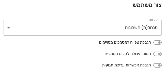 בנוסף, ניתן להחיל על סוג המשתמשת הנ״ל הגבלות ייעודיות :